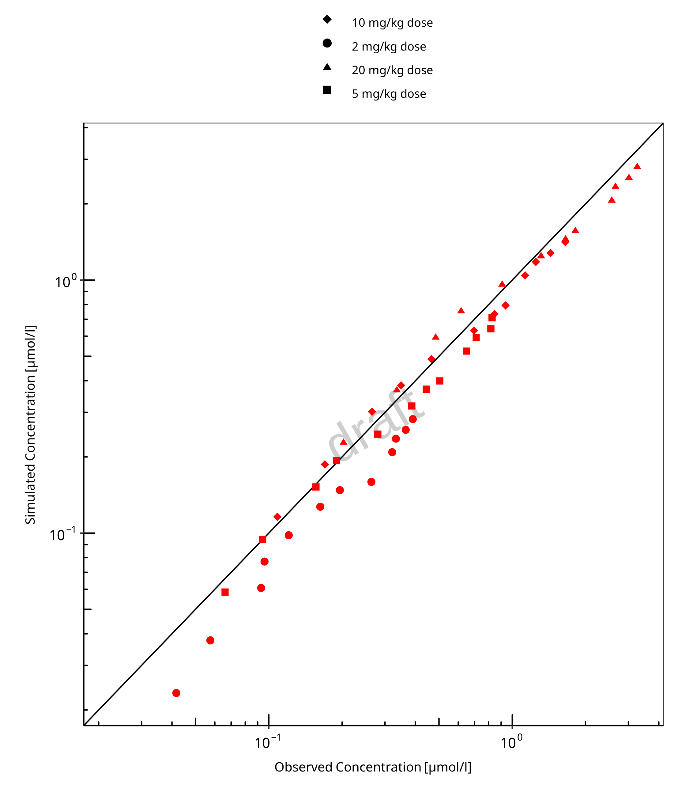 Figure 3-1: Goodness of fit plot for concentration in plasma and tissues