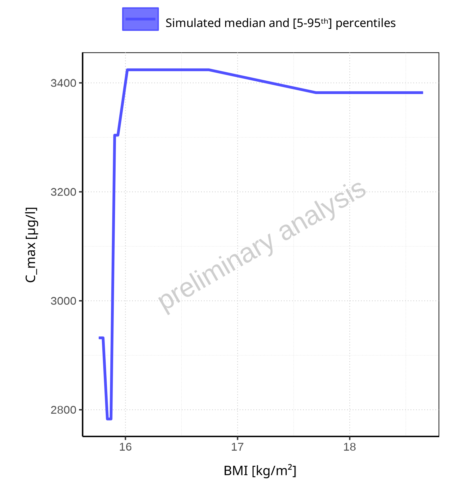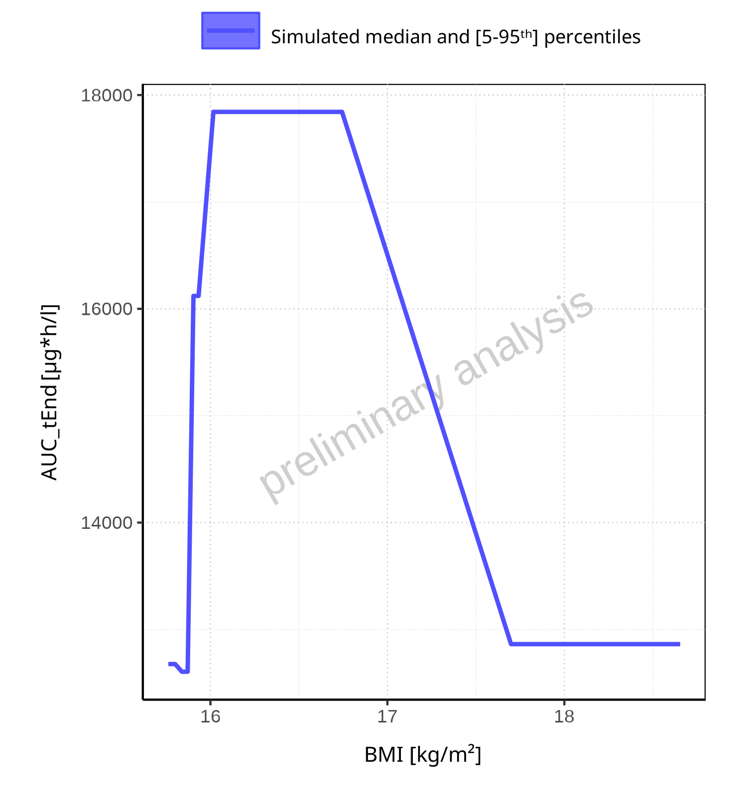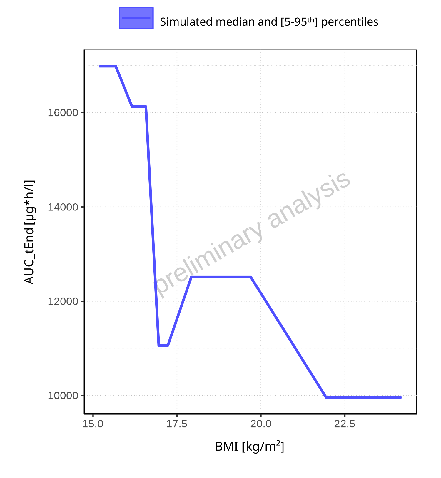 Figure 1-54: BMI-dependence of AUC_tEnd for children_0_3y. Profiles are plotted in a linear scale.