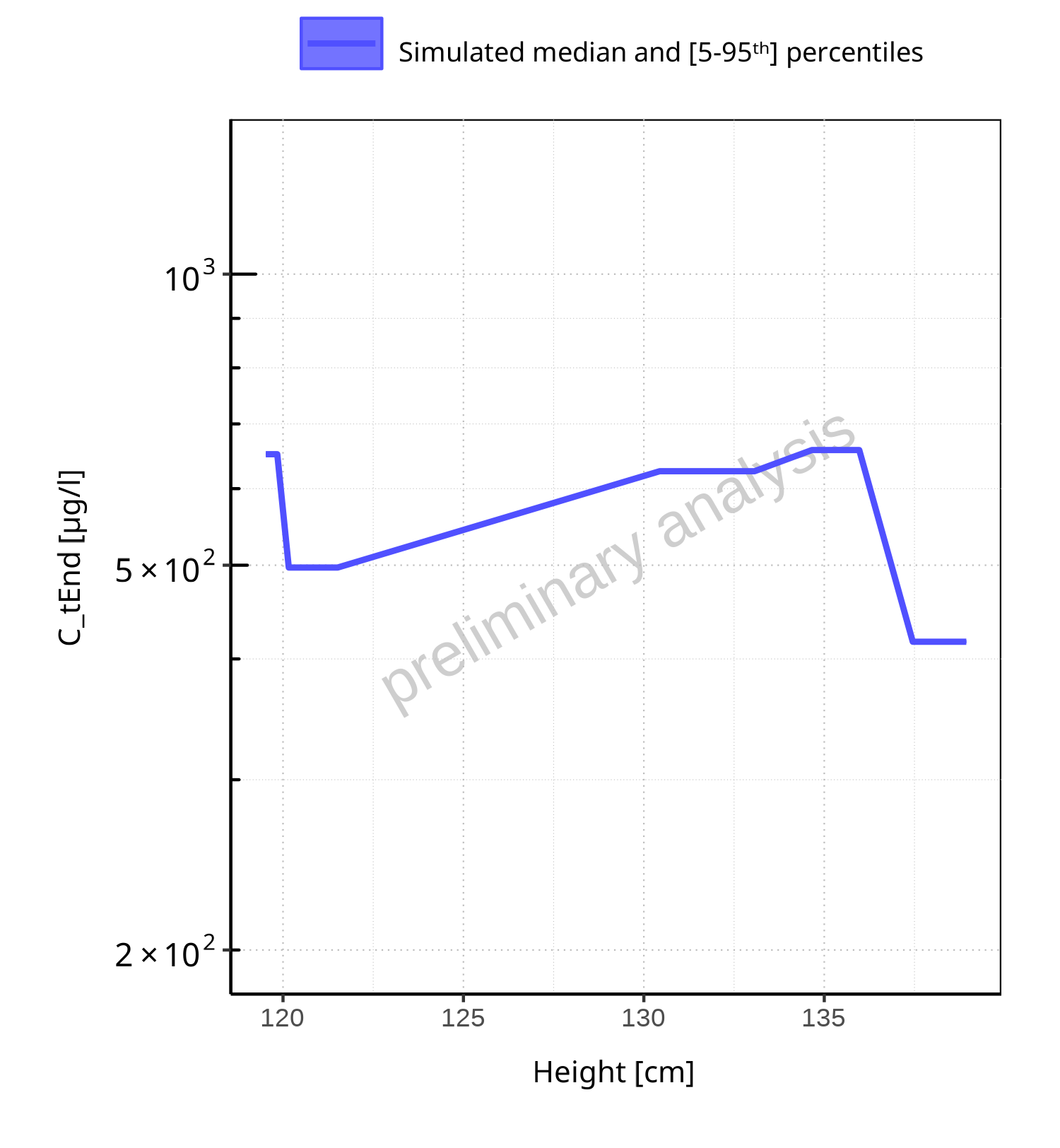 Figure 1-27: Height-dependence of AUC_tEnd for children_3_6y. Profiles are plotted in a logarithmic scale.