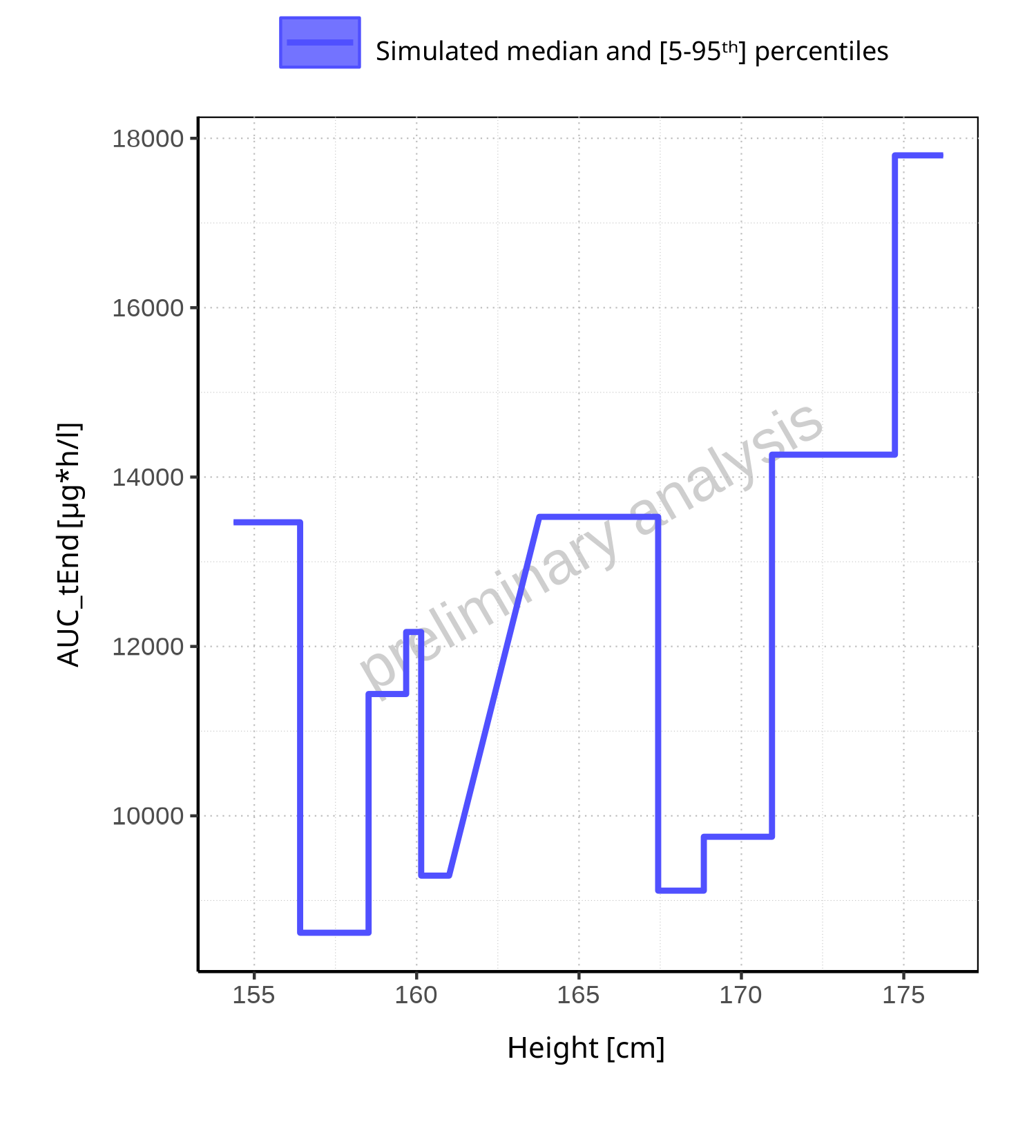 Figure 1-24: Height-dependence of AUC_tEnd for single IV administration. Profiles are plotted in a linear scale.