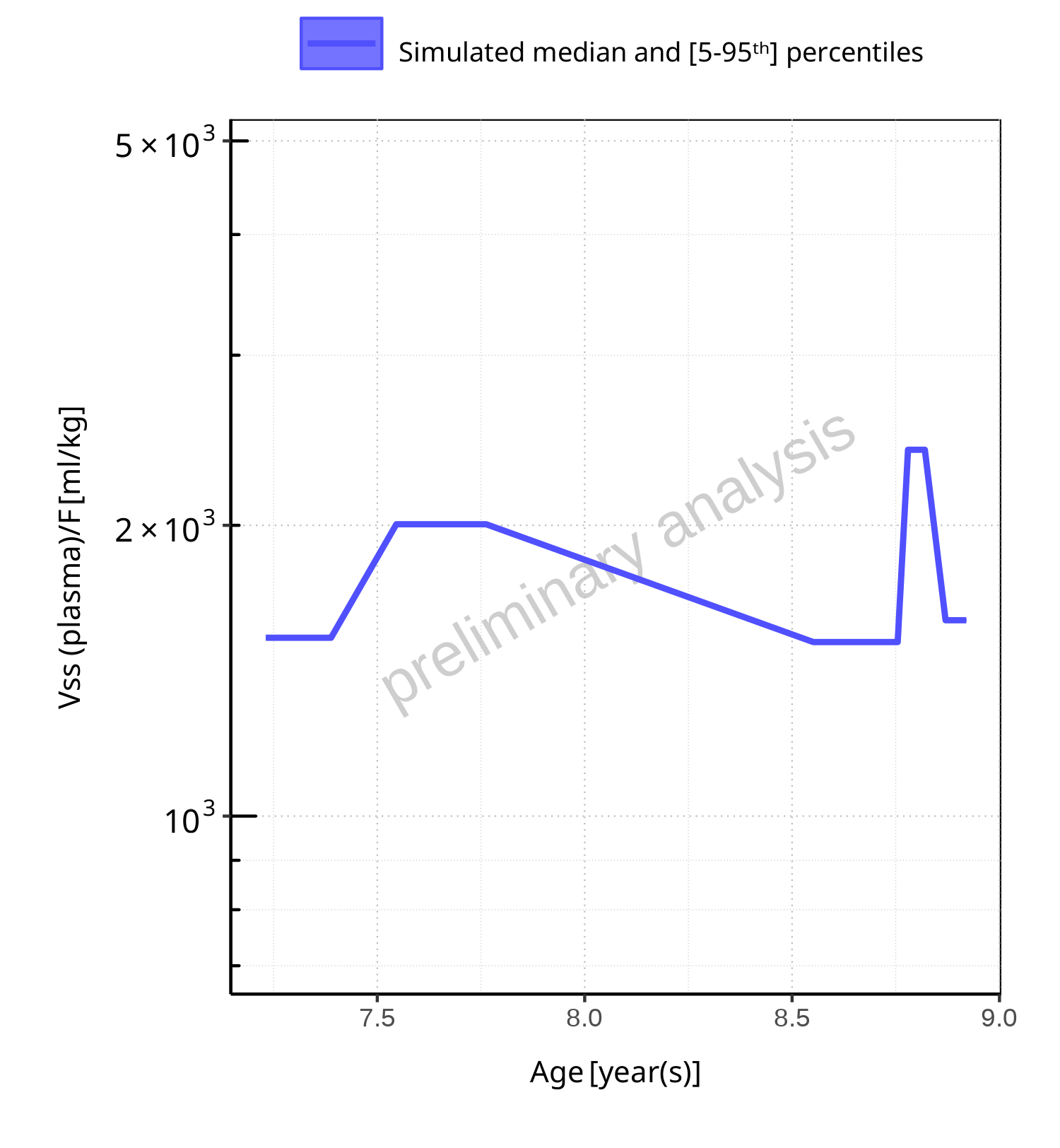 Figure 1-310: Age-dependence of Vss (plasma)/F for single IV administration. Profiles are plotted in a linear scale.